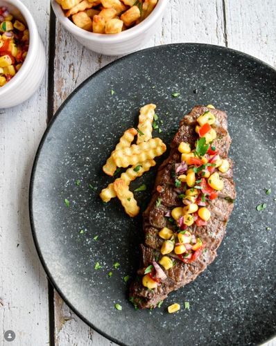 Jautienos kepsnys su kukurūzų salsaJautienos kepsnys su kukurūzų salsa - rimtiems ir sotiems pietums ar vakarienei.