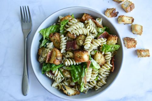 Makaronų ir pesto vištienos salotosMakaronų ir pesto vištienos salotos - pilnos skonio, sočios ir lengvai paruošiamos salotos.