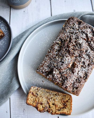 Bananų duona su sezamų karamele ir sezamų pastaBananų duona su sezamų karamele ir sezamų pasta - desertas su netikėtais karamelės gabaliukais.